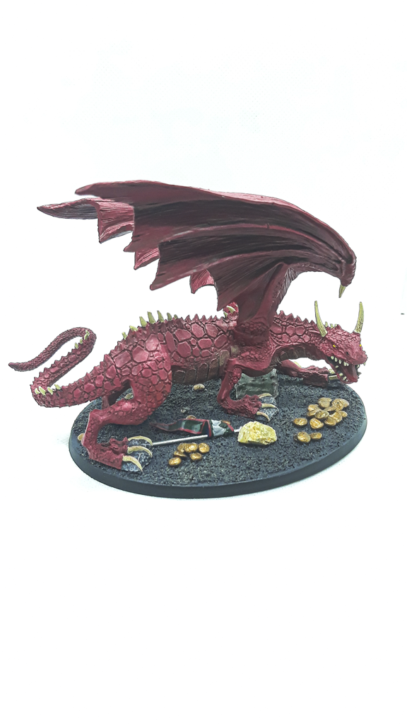 „Mit angelegten Flügeln, wie eine unermesslich große Fledermaus, lag Smaug ein wenig auf die Seite gedreht, so dass der Hobbit seine Unterseite und den langen, bleichen Bauch sehen konnte, der sich in den vielen Jahren auf diesem kostbaren Bett mit einer Kruste von Gemmen und Goldstücken bedeckt hatte“.Bilbo nimmt einen Pokal aus dem Schatz mit. Doch der Diebstahl bleibt nicht unbemerkt, Smaug tobt. Nur mit Mühe können die Zwerge ihm entkommen.