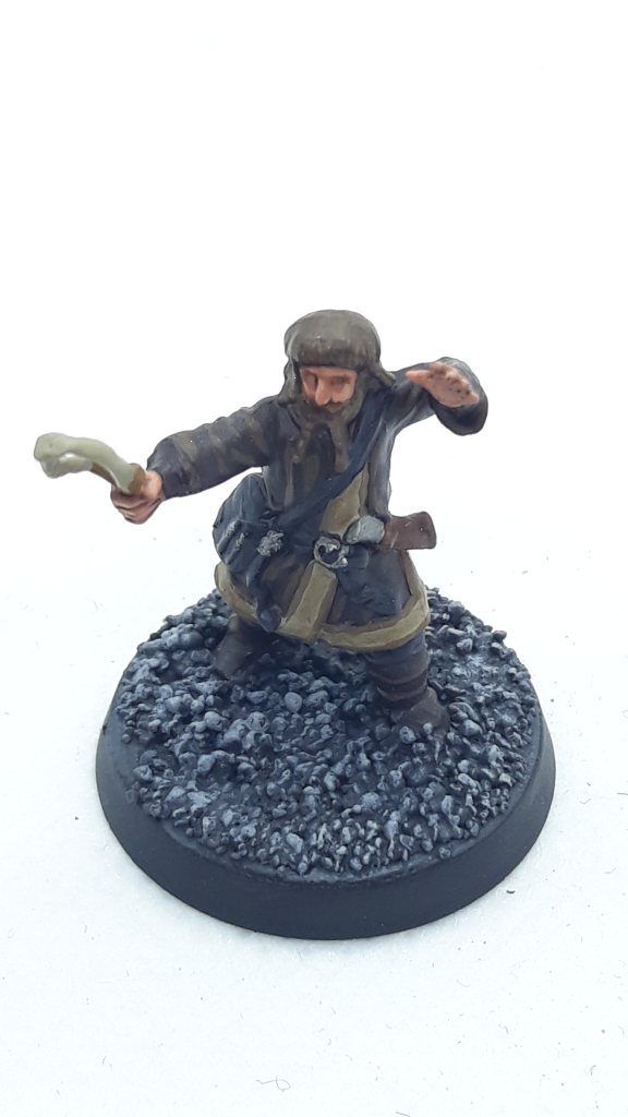 „Natürlich stieß er einen gellenden Schrei aus, so laut ein Hobbit nur schreien kann, und das ist für seine Körpergröße ganz erstaunlich“.Die Reisenden sind plötzlich von Orks umgeben, ein Kampf beginnt, die Zwerge und Bilbo werden gefangen genommen. Wiederholt rettet sie Gandalf vor dem sicheren Tod. Sie flüchten, doch dann stürzt Bilbo in ein Loch und bleibt ohnmächtig zurück.