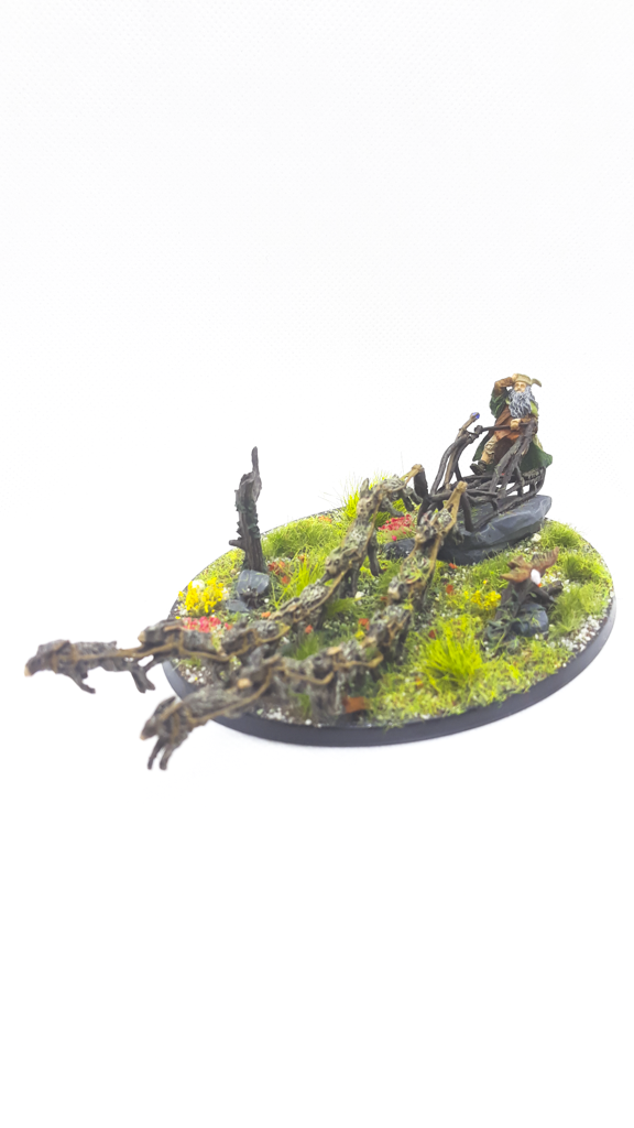 Mit großem Hallo wird Bilbo von den Zwergen und Gandalf wieder in Empfang genommen. Gemeinsam ziehen sie weiter bis ihre Reise abermals unterbrochen wird: Wölfe nähern sich ihnen. Es bleibt nur die Flucht auf die Bäume. Als Gandalf brennende Kienäpfel auf sie wirft, bricht ein Tumult bei den Wölfen aus. Vom Lärm angezogen, kommen Adler zur Lichtung. Kurz danach treffen auch noch die Orks dort ein. Die Adler können Bilbo und seine Gefährten von den Baumwipfeln retten und so vor dem Flammentod durch die inzwischen brennenden Bäume bewahren.