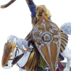 Waffen: schwere Rüstung, Ostling-Falchion (Elbenklinge), gepanzertes Pferd •