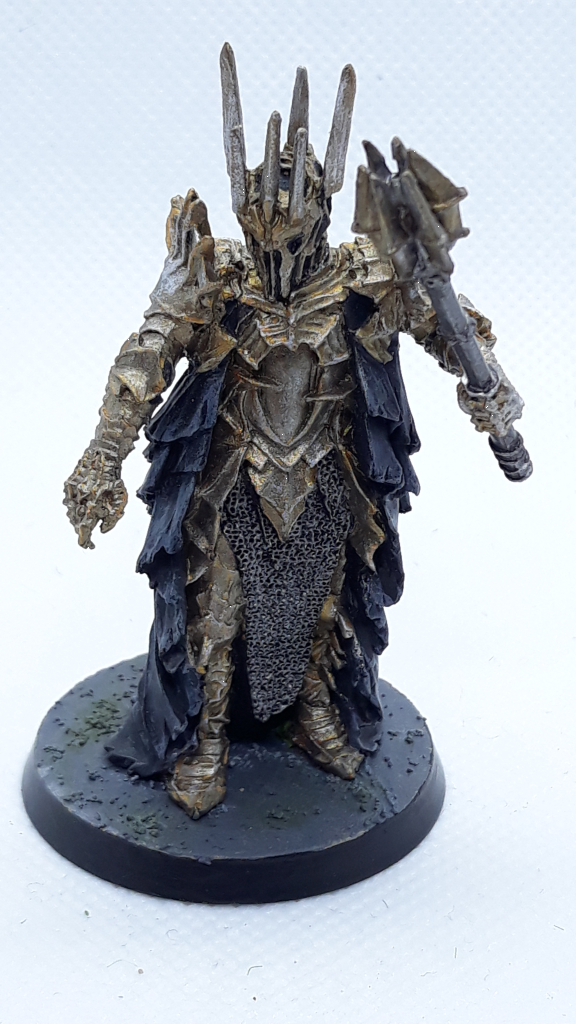 Angainor gefesselt, aus seiner Eisenkrone wurde ein Halseisen geschmiedet und sein Kopf wurde ihm auf die